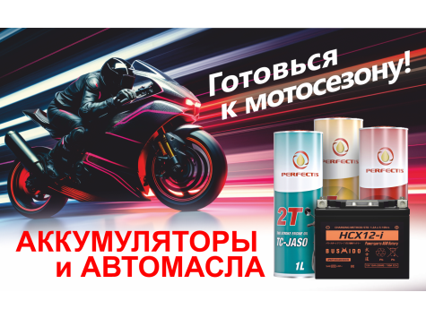 Чтобы ваш мотоцикл работал как часы, предлагаем обратить внимание на аккумуляторы BUSHIDO и мотомасла PERFECTIS.